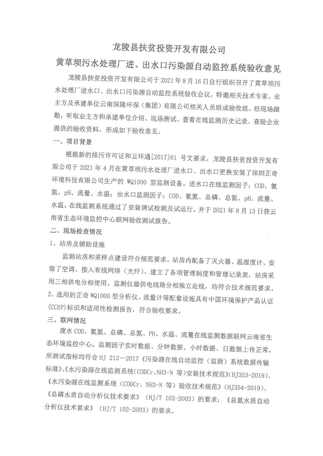 (定稿)龍陵扶貧投資開發有限公司龍陵縣黃草壩水處理廠出水口驗收報告.pdf