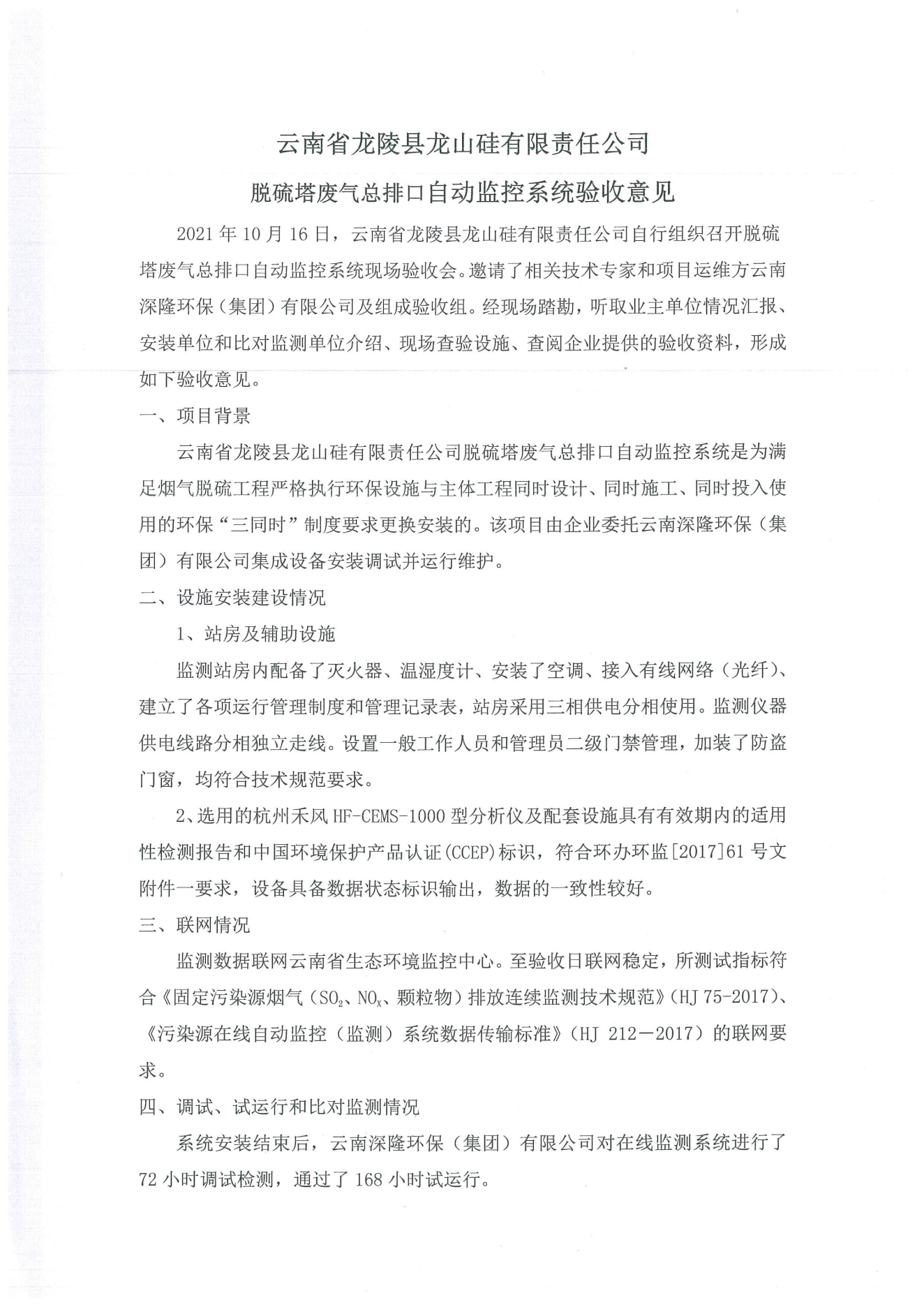 (定稿)龍陵縣龍山硅冶煉脫硫廢氣總排口驗收報�?.0.pdf