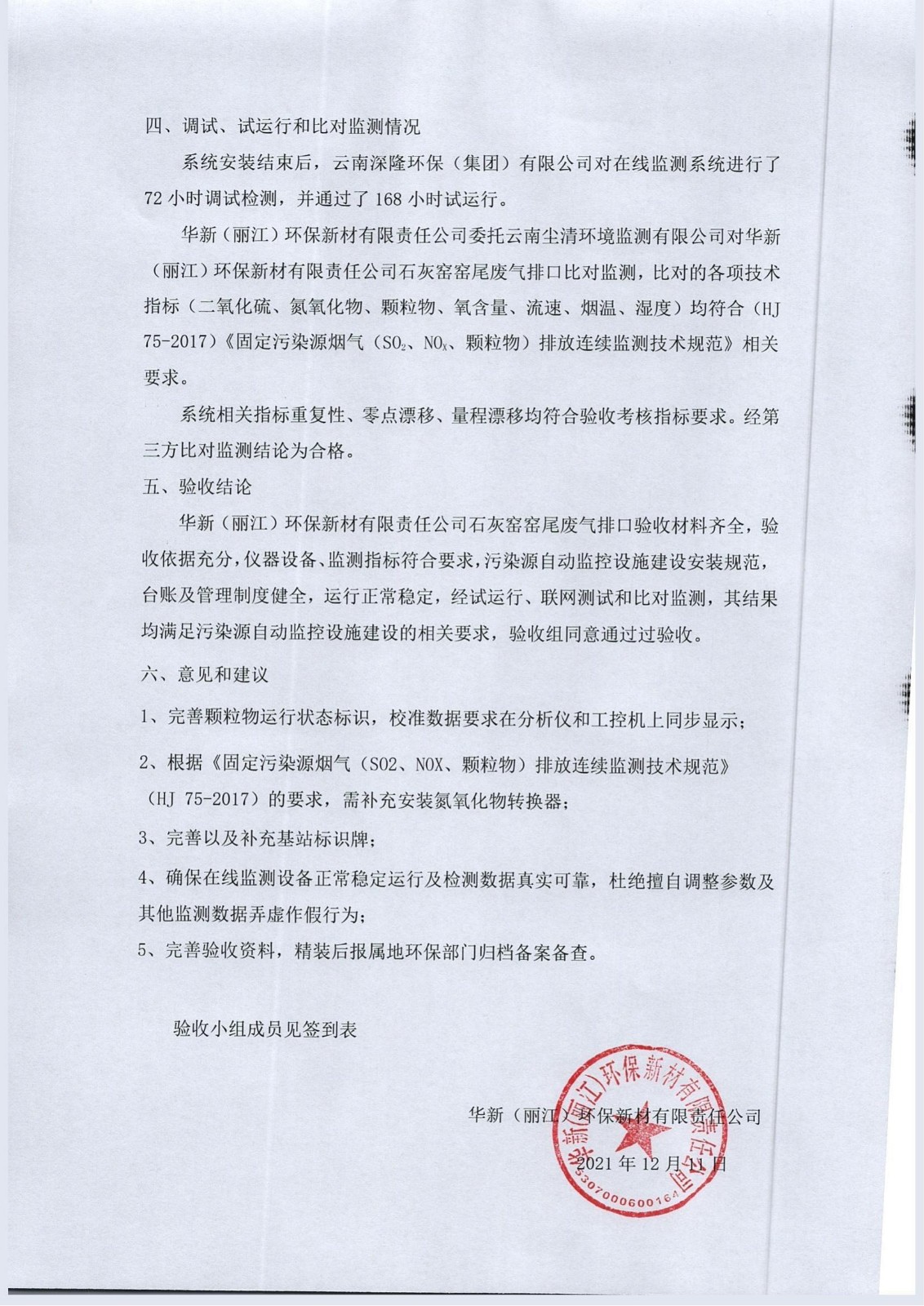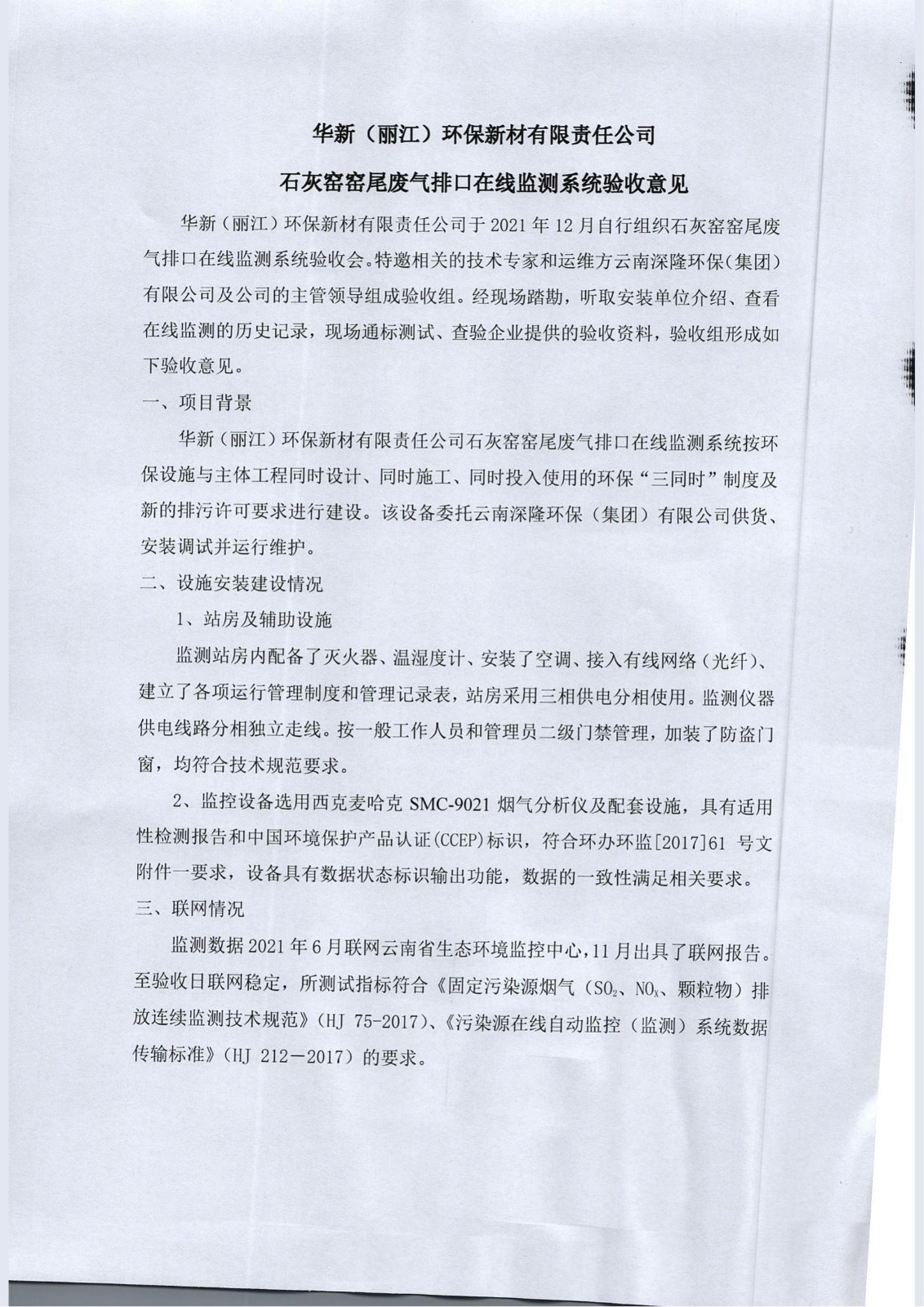 1、華新(麗江)環保新材石灰窯窯尾廢氣排口在線監測系統驗收報告.pdf